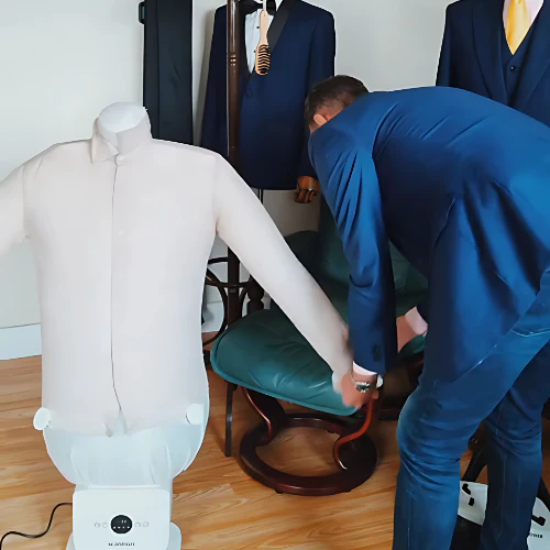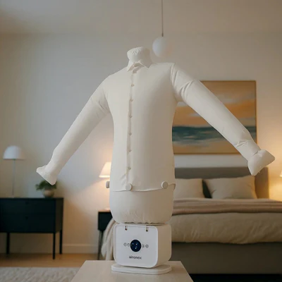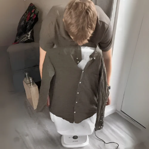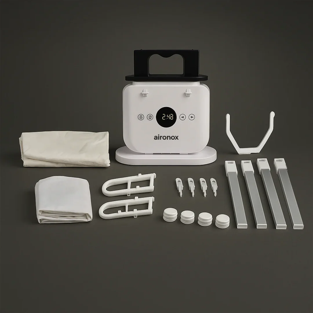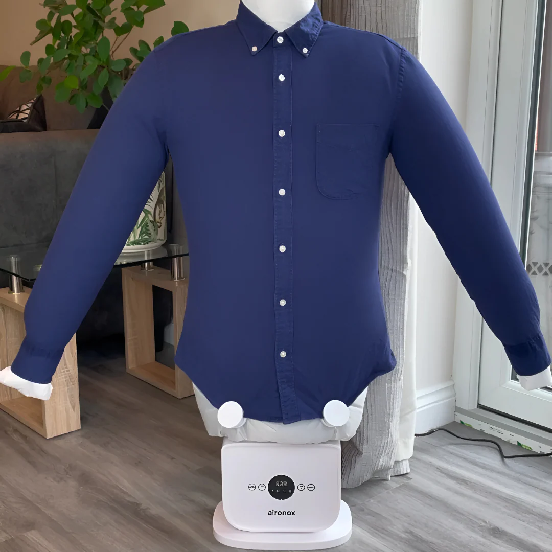 Med sitt enkla fästsystem är Aironox klar att användas på några sekunder – utan strykbräda, utan tunga lyft, utan komplicerade förberedelser. Bara ta på dig skjortan, blusen eller t-shirten, tryck på start och låt maskinen ge ett snyggt, skrynkelfritt resultat. Det är det snabbare och enklare alternativet till traditionell strykning.